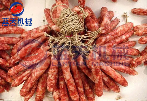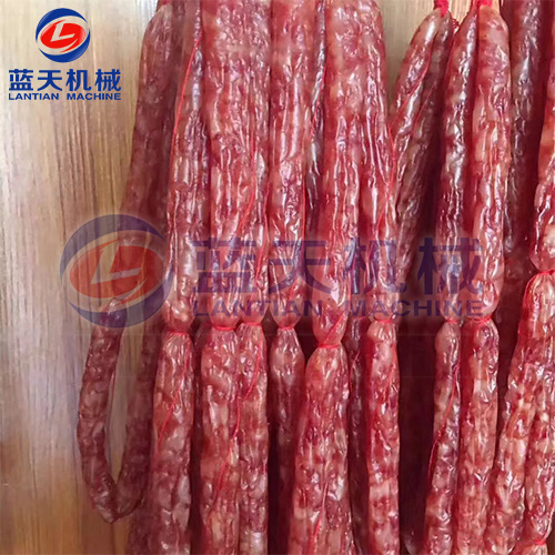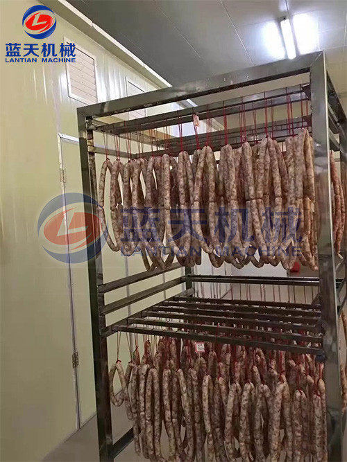 2、減速干燥階段。發(fā)色期和收縮定型期的控制,溫度控制在52℃~54℃,濕度控制在45%左右、時(shí)間為3到4個(gè)小時(shí),臘腸逐漸從淺紅色轉(zhuǎn)為鮮紅色,腸衣開始收縮,這時(shí)一定要注意硬殼的出現(xiàn),可以進(jìn)行冷熱交替使用,效果更好。
