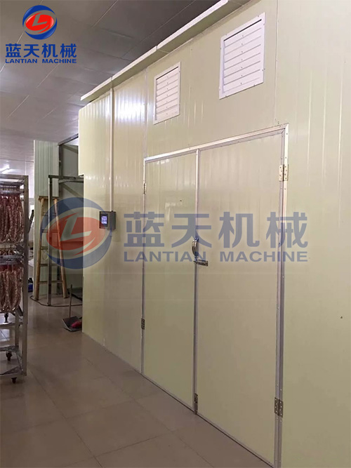 1、等速干燥階段。歷時(shí)5到6個(gè)小時(shí),在物料裝入烘干房后兩小時(shí)內(nèi),溫度快速升到60℃~65℃,不用排濕。這一過程主要是起到一個(gè)發(fā)酵的過程,控制肉不變色變味。預(yù)熱時(shí)間后,調(diào)節(jié)溫度到45℃~50℃。