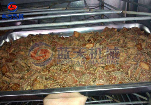 紅糖烘干工藝:將紅糖磚切成方塊狀,置入托盤中,在物料架中分層放好,注意層與層之間的距離,將物料車推入烘干房,開始啟動溫濕控制系統(tǒng),在紅糖烘干機(jī)的使用過程中,第一個小時可以只升溫不排濕,因為在工作的第一階段,烘干房里面的濕度很低。第二階段設(shè)定為烘干加排濕的工作程序模式。紅糖烘干機(jī)帶有余熱回收功能。在排濕過程中的熱量會重新參與到烘干房的熱循環(huán)。排濕過程當(dāng)中不會造成熱量浪費(fèi),從而降低了運(yùn)行成本。