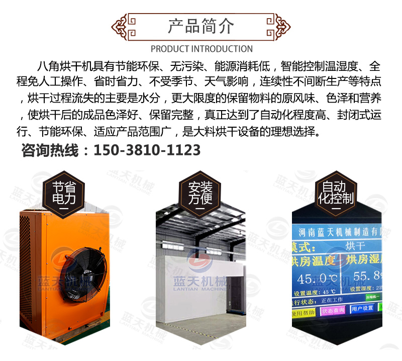 結(jié)合以上問(wèn)題,新的八角烘干機(jī)出現(xiàn)了,這種設(shè)備是通過(guò)少許電能驅(qū)動(dòng)壓縮機(jī)做功,從而使系統(tǒng)中的冷媒吸熱放熱來(lái)實(shí)現(xiàn)熱量從高位轉(zhuǎn)移到低位的新能源設(shè)備,是一種氣流干燥設(shè)備,節(jié)能環(huán)保,智能化控制,不再看天氣,不再需要人守著,一鍵啟動(dòng),自動(dòng)烘干,自動(dòng)停機(jī)。
