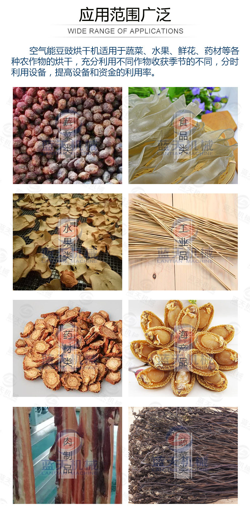 豆豉烘干機還可以用在魚粉、咖啡豆、蒜片、飼料顆粒、皮革污泥、大豆豆粕、油茶籽、山茶籽、玫瑰花、魚干,蔬菜,食品,辣椒等材料的烘干處理。