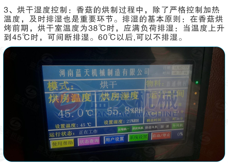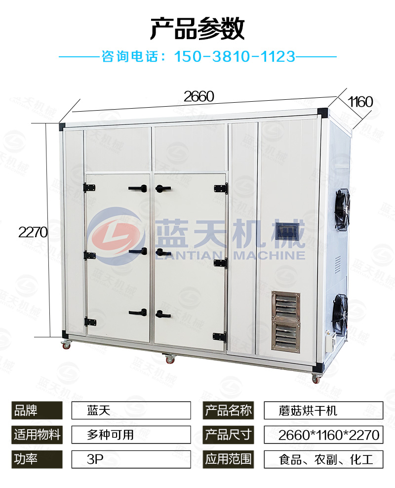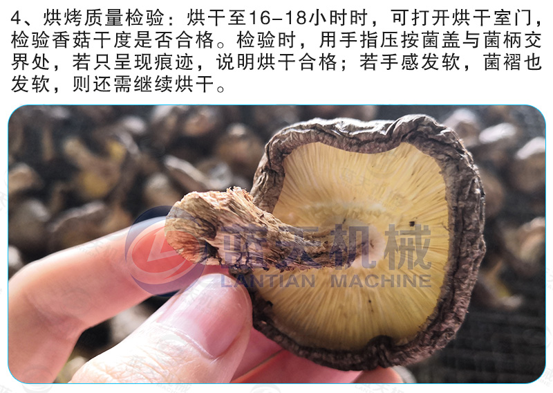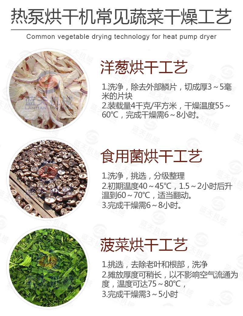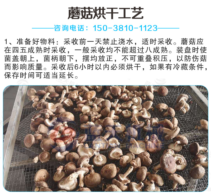 (3)烘干質(zhì)量好——蘑菇烘干機裝置中的干燥介質(zhì)是在封閉的空間循環(huán);不受外界氣候條件的影響,一年四季在同一條件下運行,所以烘干干燥的質(zhì)量非常良好。