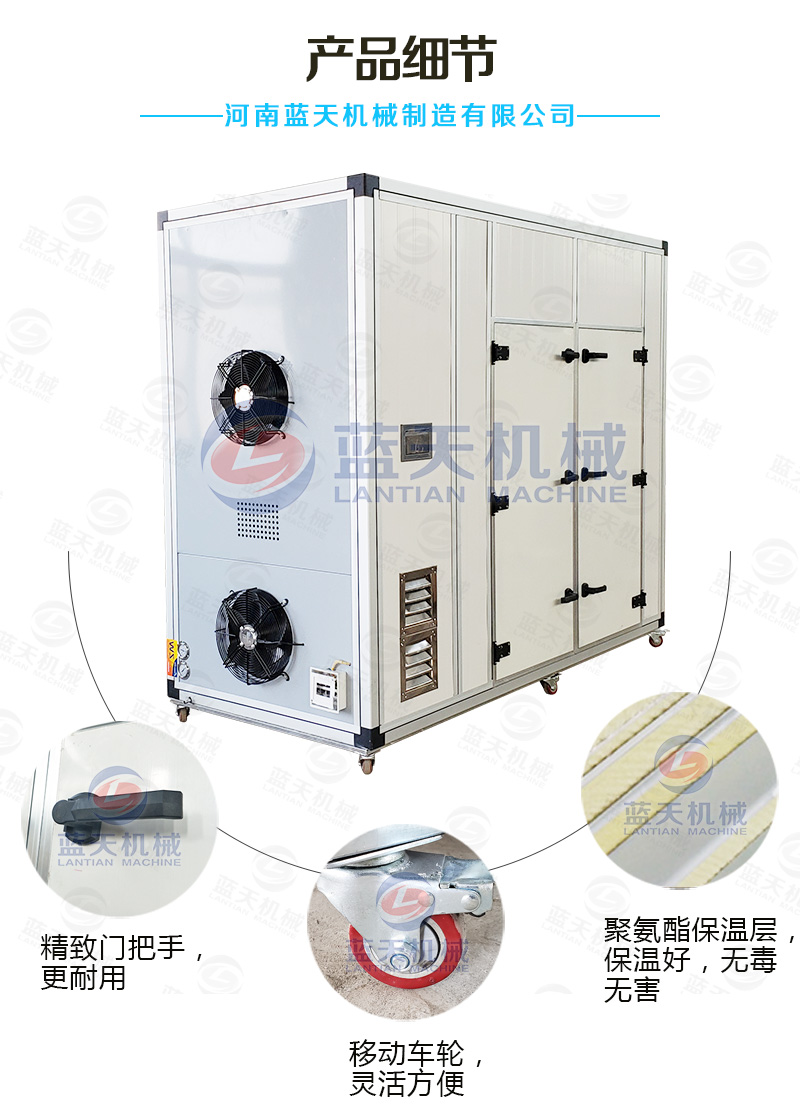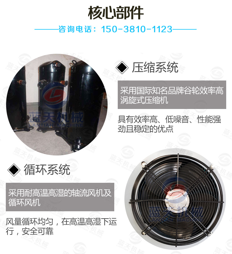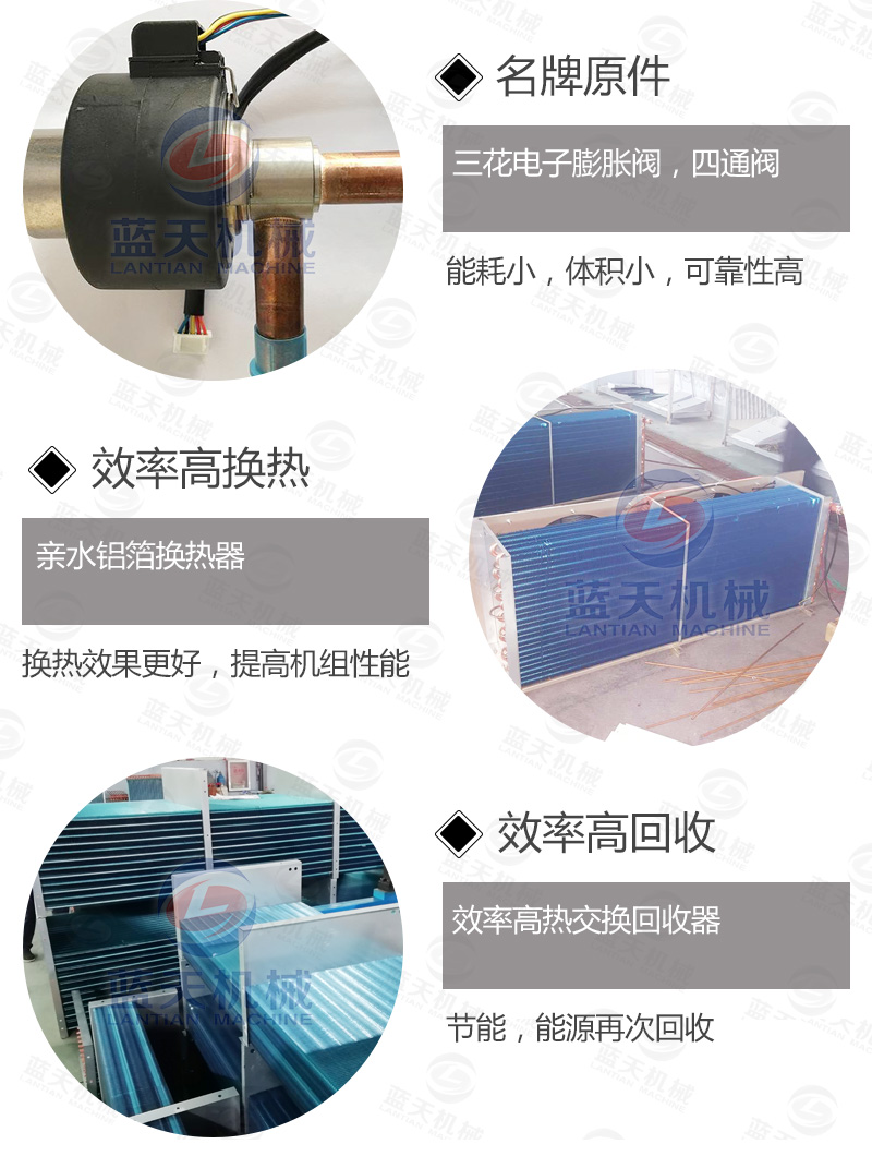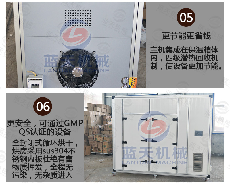 (1)能耗費用低——野生蘑菇烘干機采用加熱模式是熱泵空氣能,烘干機在運行中能回收外界環(huán)境中濕熱空氣的顯熱和潛熱,能量得到足夠而合理利用,是一種公認的效率高節(jié)能設(shè)備。比傳統(tǒng)的柴油鍋爐干燥房、電熱烘干房,煤鍋爐都節(jié)能。