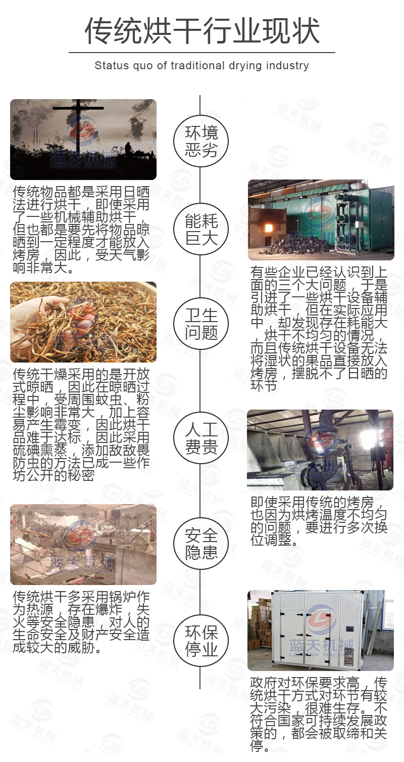 (7)設(shè)備運行沒有三廢的排放,不需要鍋爐或者燒煤燒柴,設(shè)備主要是吸收空氣中熱量對物料進行烘干,真正實現(xiàn)節(jié)能生產(chǎn)。